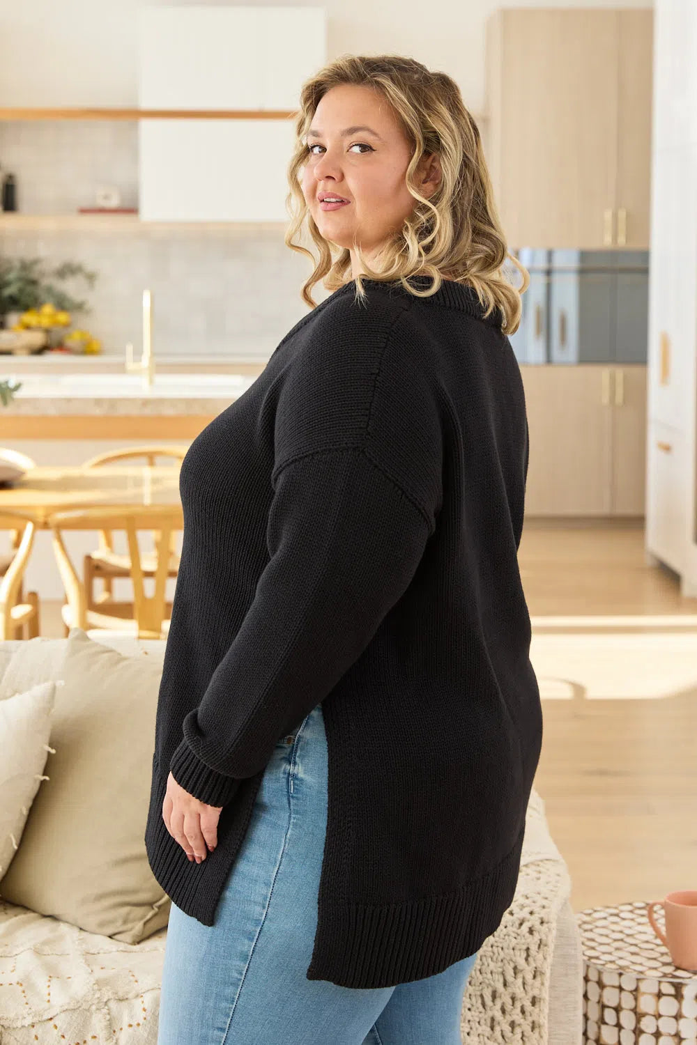 We love how the Billy Knit is somehow a relaxed fit and super comfy, while still showing shape (its like magic)! This ultra luxe knit is made from the softest, 100% cotton yarn with a heaviness that gives it incredible drape and coziness, while maintaining some breathability. The length elongates the body, while the side splits create movement and draw the eye in at the waist, creating a sleek and elevated look. We've designed the fit to come in at the bust and waist, and then subtly flare out to a looser fit through the tummy and lower hip. Our favourite way to style it is with a pair of jeans or leggings, and a casual sneaker for an effortless weekend look.