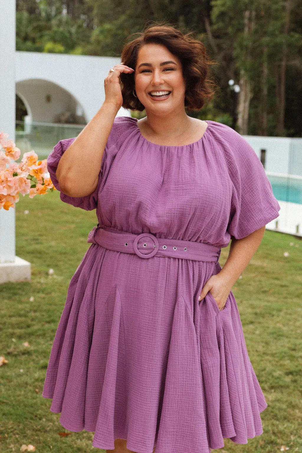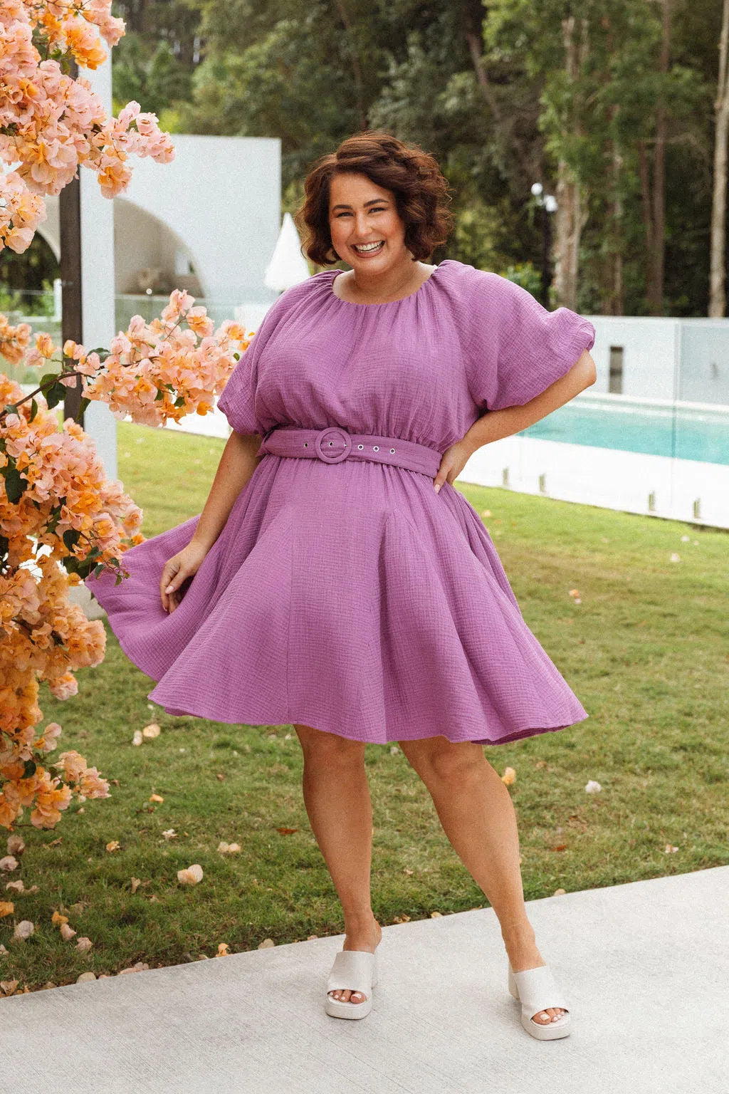- True to Peach sizing (our advice: choose your size based on your bust measurement. The skirt has lots of room for the hip area, and the waist has plenty of stretch and a removable belt. Bear in mind the bust has no stretch, so if you're in between sizes you may consider choosing the size up. Peach shoppers, most will prefer their usual size in Peach dresses. New to Peach, you'll find we're a little more generous in our sizing than most inclusive retailers - bear this in mind as you may need to size down from your usual size in other brands. DM or email us for advice if needed!)