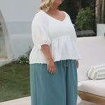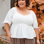 The Kate Top is the sweetest, most versatile top to add to your wardrobe! Its made from gorgeous, breathable textured cotton (so great for warmer days!), the fit is so flexible it works across body shapes, and the bodice is double lined for a supportive and smoothing, yet comfortable fit. This piece will complete your Peach wardrobe, pairing so well with our high waisted pant styles for a feminine, resort-vibe look.