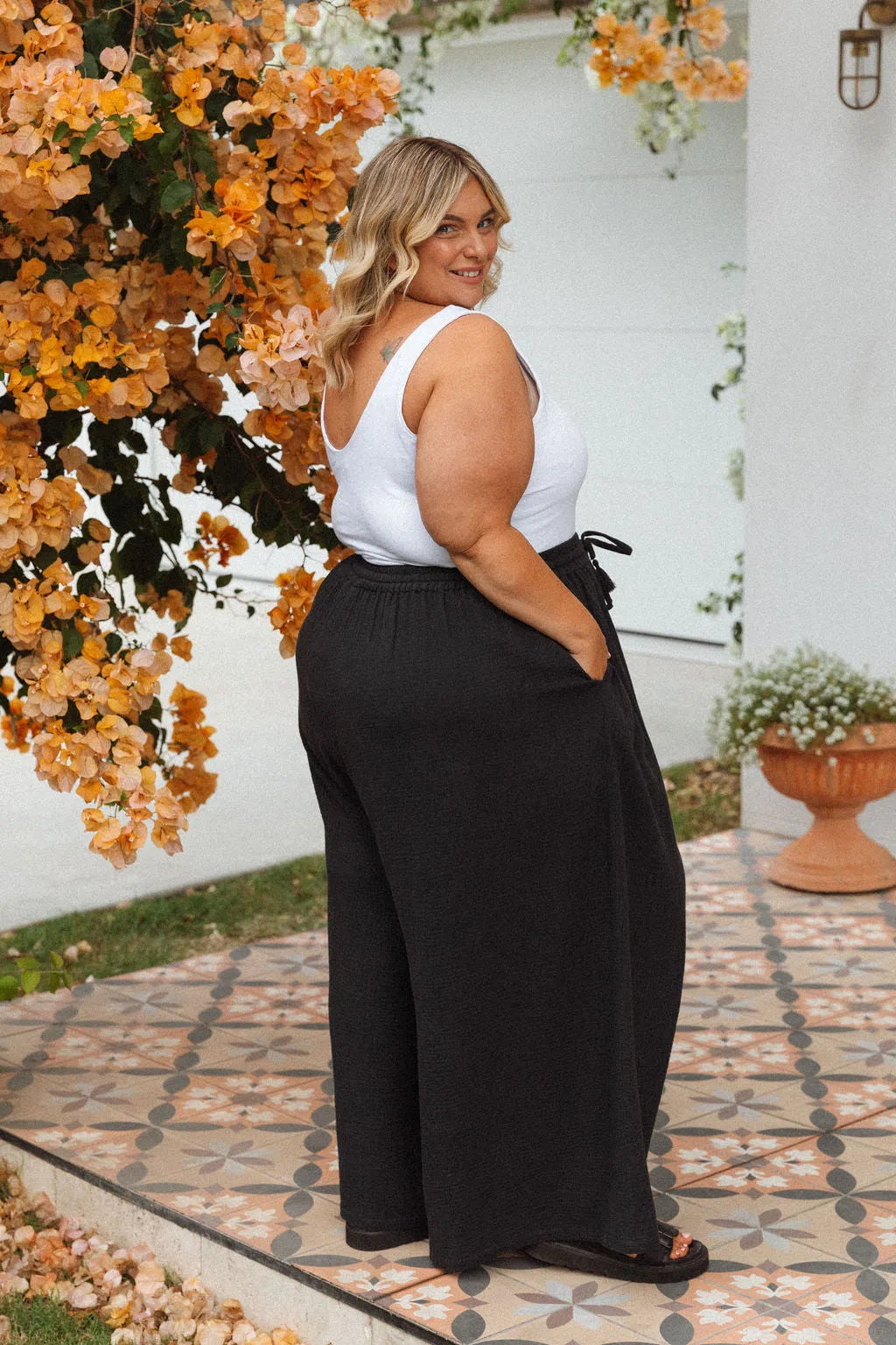 The perfect summer pants are here, and they are pure paradise! We can imagine wearing these at a resort or by the beach with their gorgeous light and breathable cotton fabrication. The tassel drawstring ends and textured finish give them a luxe and elevated look. Perfect for a warm, relaxed day at home or for packing on your next holiday! Our hot tip for styling, they pair so well with our Kate Top for an on-trend resort set vibe.
