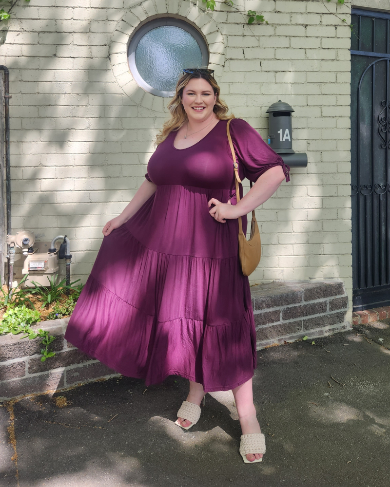 It is soft to touch and very flattering to look at. It goes with lots of accessory colours (I got the lilac dress). It has gone straight to favourite!