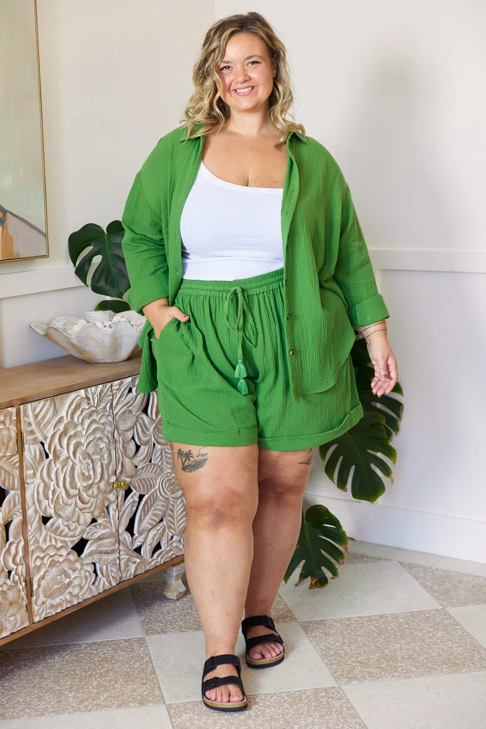 We love a relaxed yet put together look, and the Romy Shorts give that perfect casual, holiday vibe. Made from a lightweight, textured cotton to keep you cool on those warmer days. Style for your coffee run or throw them on over bathers for the beach. We love to pair with slides and a tucked in top for an easy and effortless summer vibe.