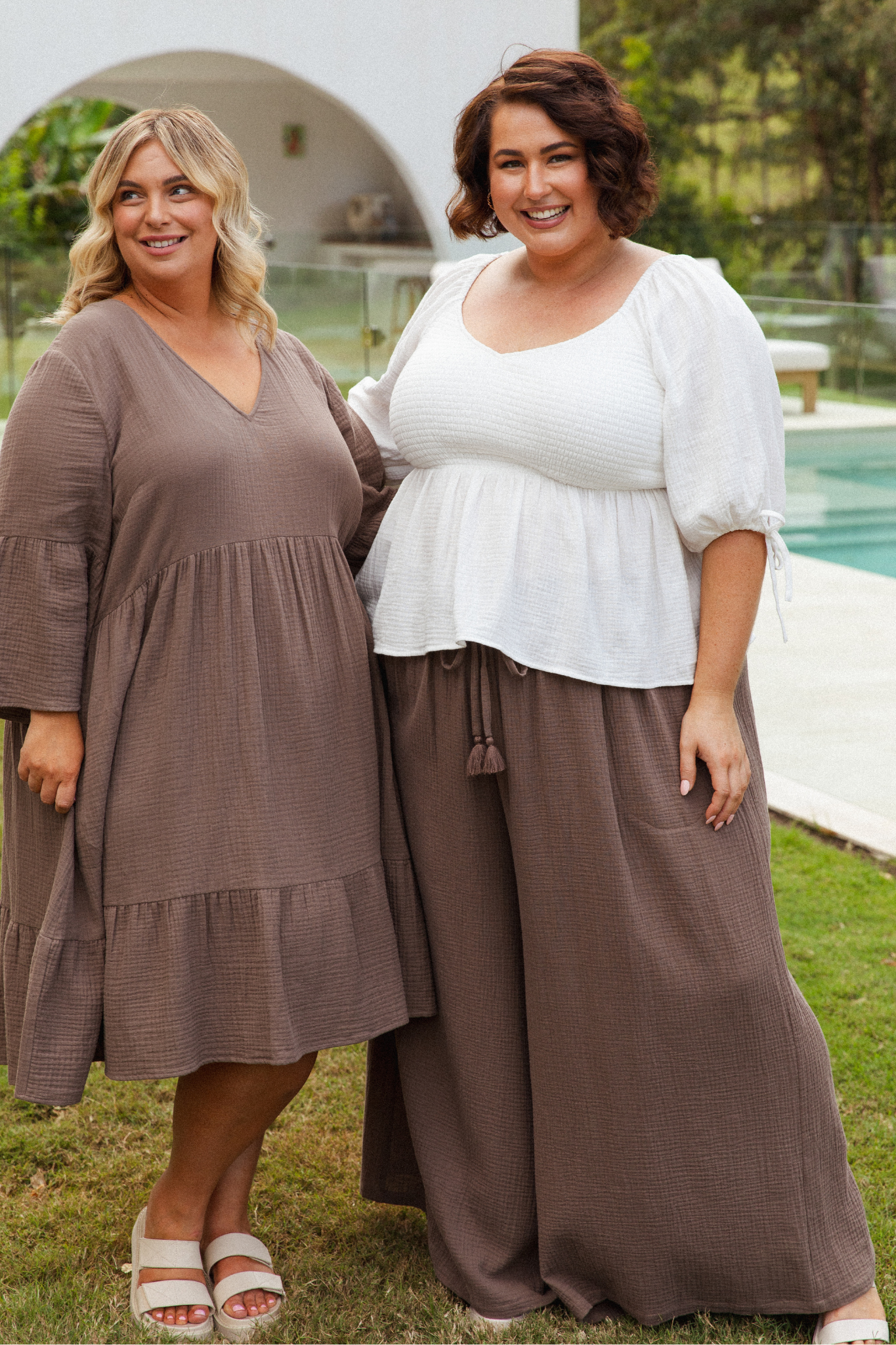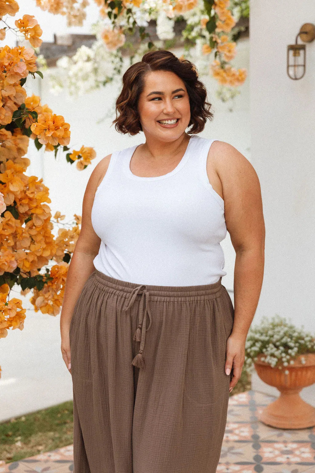 The perfect summer pants are here, and they are pure paradise! We can imagine wearing these at a resort or by the beach with their gorgeous light and breathable cotton fabrication. The tassel drawstring ends and textured finish give them a luxe and elevated look. Perfect for a warm, relaxed day at home or for packing on your next holiday! Our hot tip for styling, they pair so well with our Kate Top for an on-trend resort set vibe.