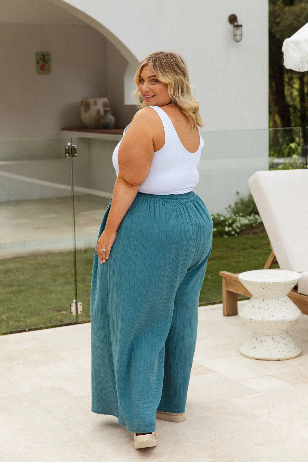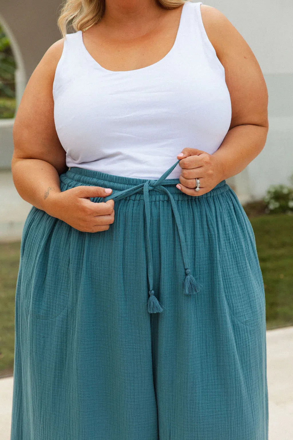 • The perfect summer pants are here, and they are pure paradise! We can imagine wearing these at a resort or by the beach with their gorgeous light and breathable cotton fabrication. The tassel drawstring ends and textured finish give them a luxe and elevated look. Perfect for a warm, relaxed day at home or for packing on your next holiday! Our hot tip for styling, they pair so well with our Kate Top for an on-trend resort set vibe.