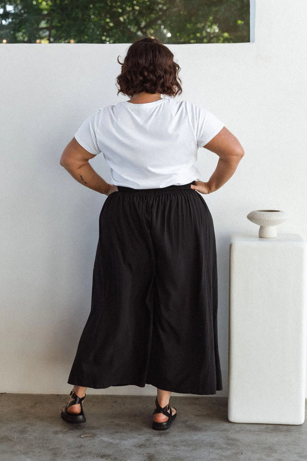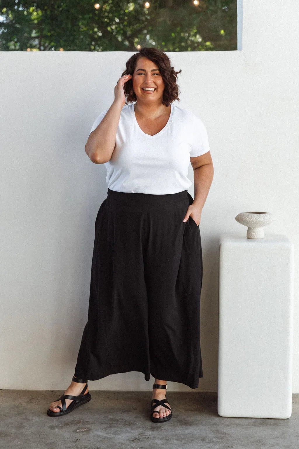 We love that swoosh, we love that drape, we love the way these move! What's not to love about our Maya Pants? The ultra wide leg on these pants mean you could almost mistake them for a skirt. The flat finish across the front panel creates a smooth line across the waist, with an elasticated back for stretch and comfort. You could wear a crop, a firm fitting top tucked in or a looser style top french tucked - choose your own adventure! It's also easy to make them appropriate for a dressier occasion with a heel, or for a casual day in a flat.
