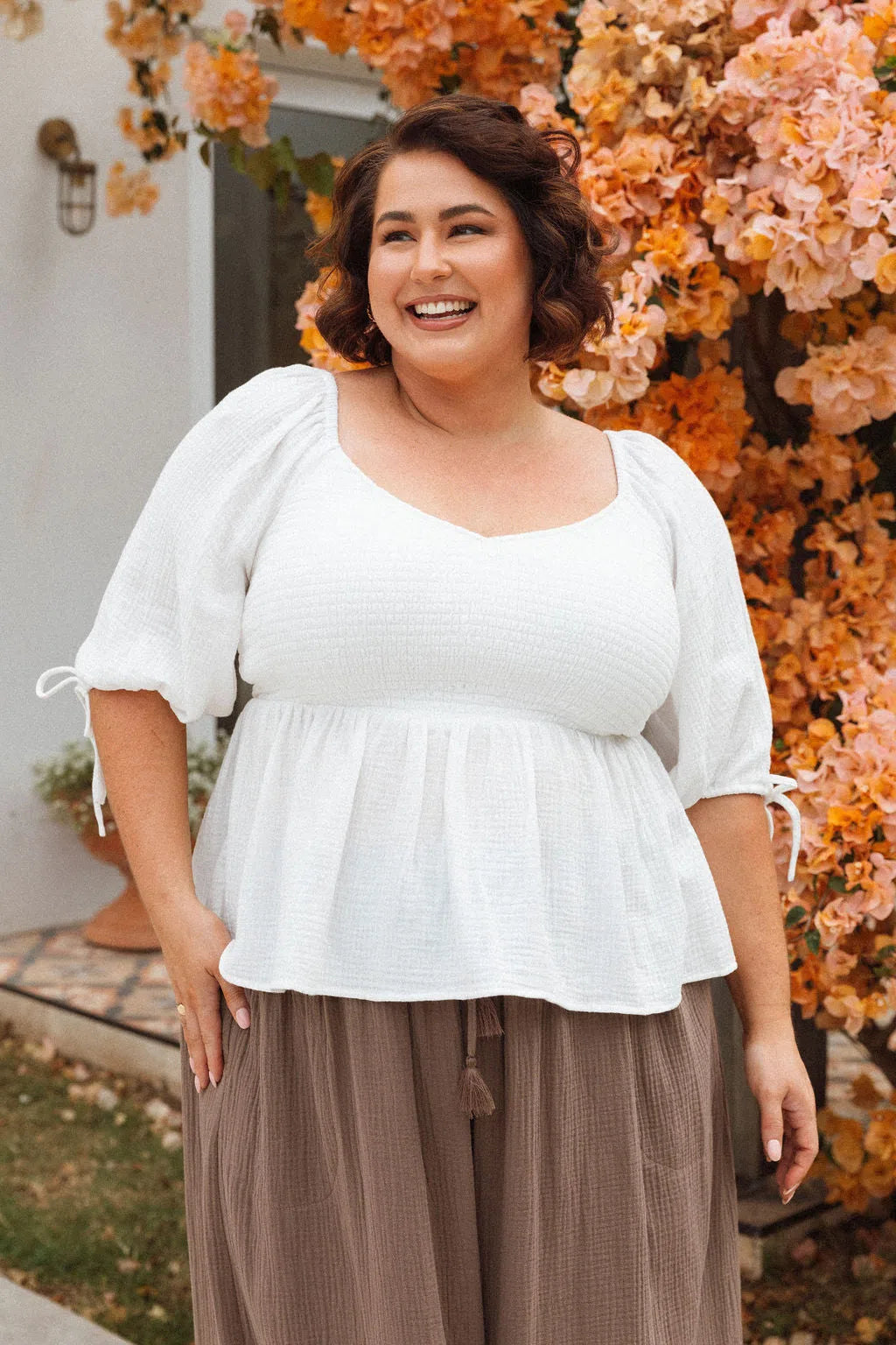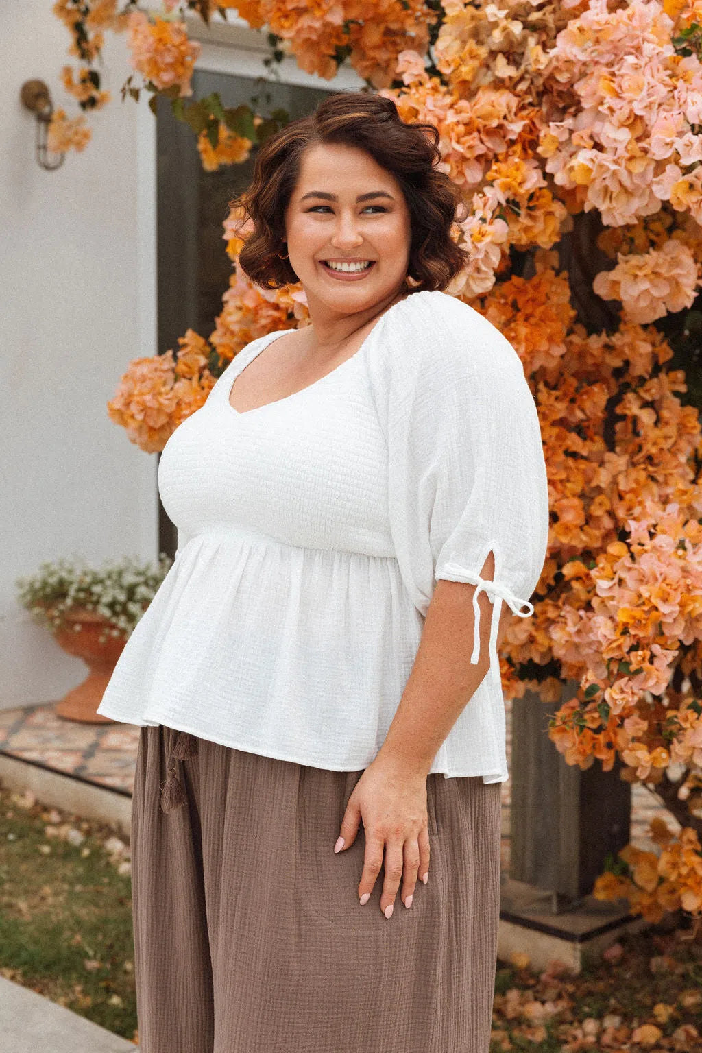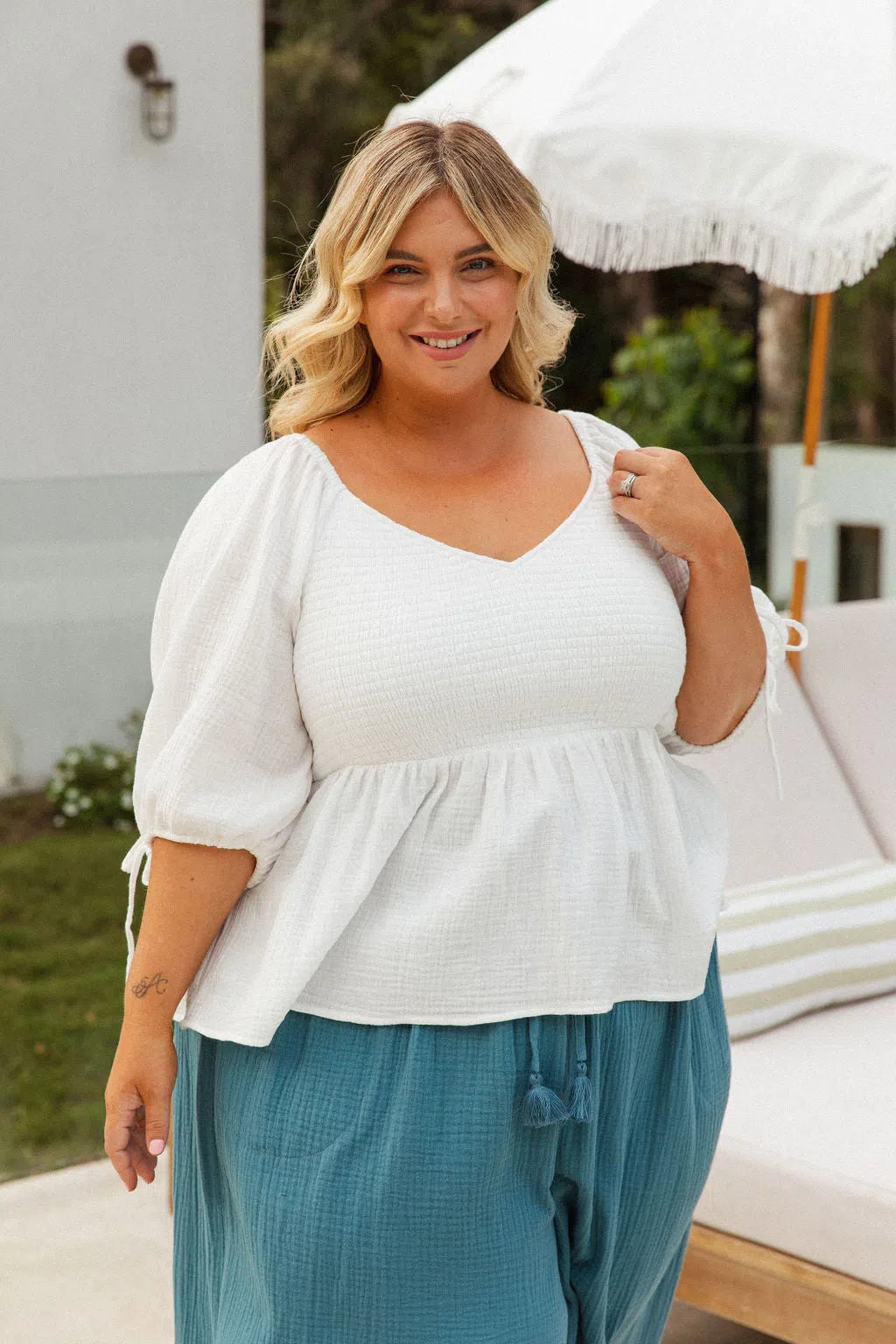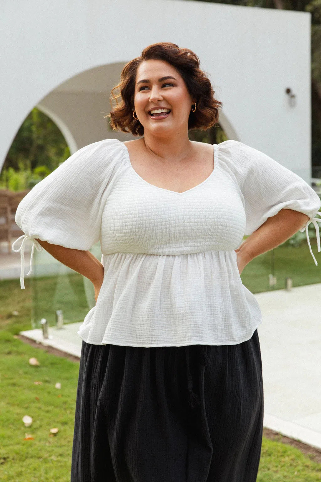 The Kate Top is the sweetest, most versatile top to add to your wardrobe! Its made from gorgeous, breathable textured cotton (so great for warmer days!), the fit is so flexible it works across body shapes, and the bodice is double lined for a supportive and smoothing, yet comfortable fit. This piece will complete your Peach wardrobe, pairing so well with our high waisted pant styles for a feminine, resort-vibe look.