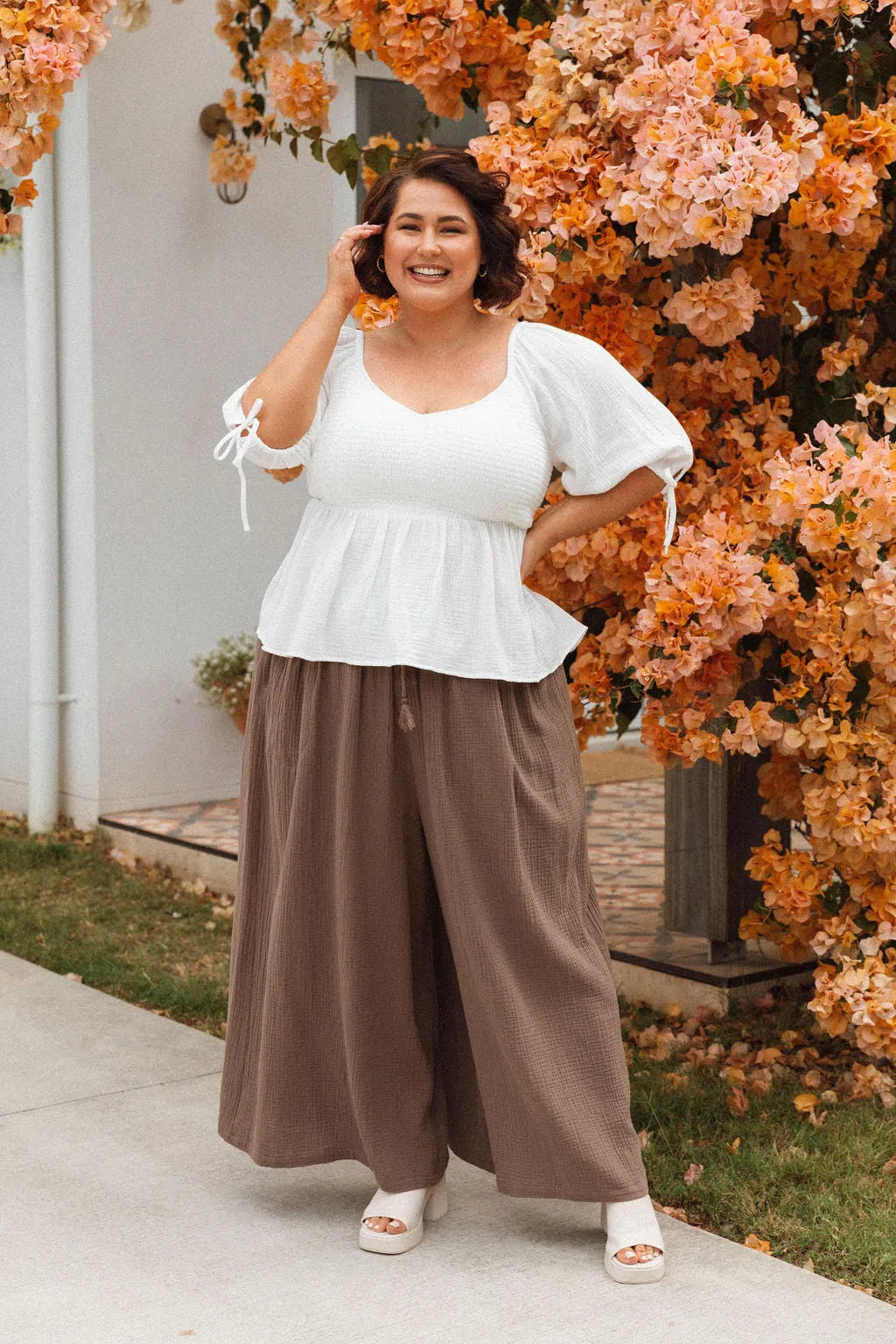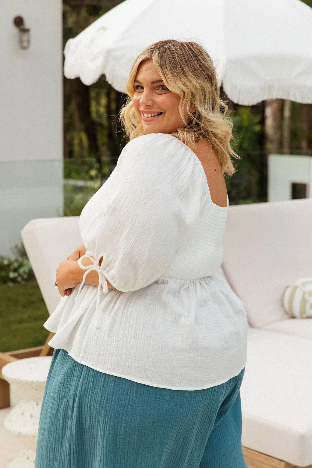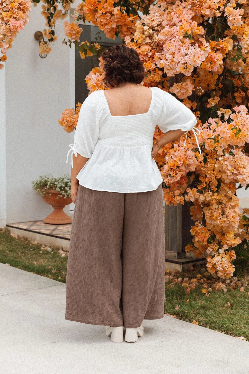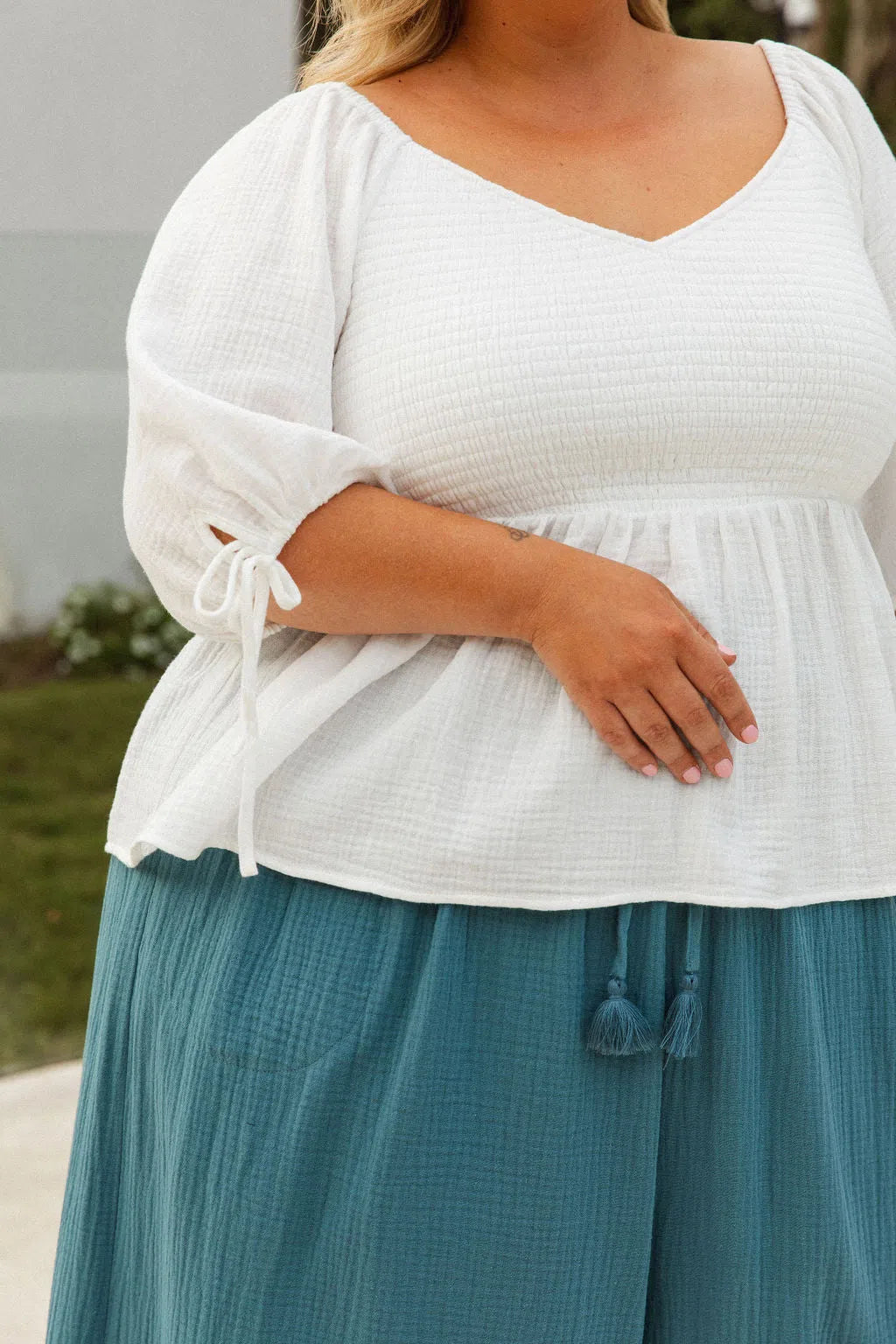 The Kate Top is the sweetest, most versatile top to add to your wardrobe! Its made from gorgeous, breathable textured cotton (so great for warmer days!), the fit is so flexible it works across body shapes, and the bodice is double lined for a supportive and smoothing, yet comfortable fit. This piece will complete your Peach wardrobe, pairing so well with our high waisted pant styles for a feminine, resort-vibe look.