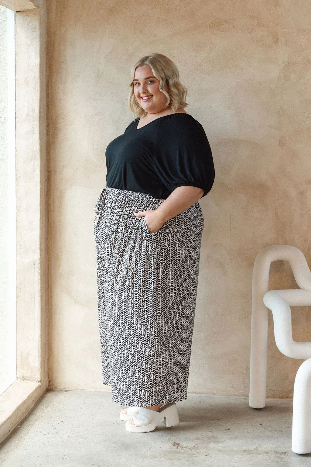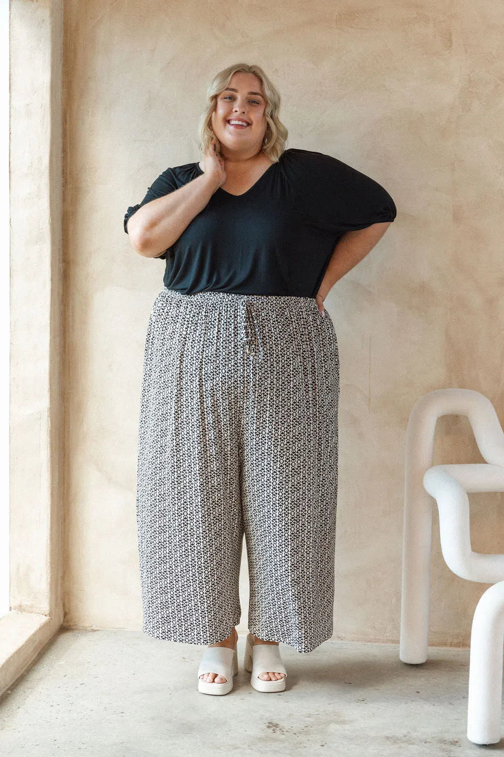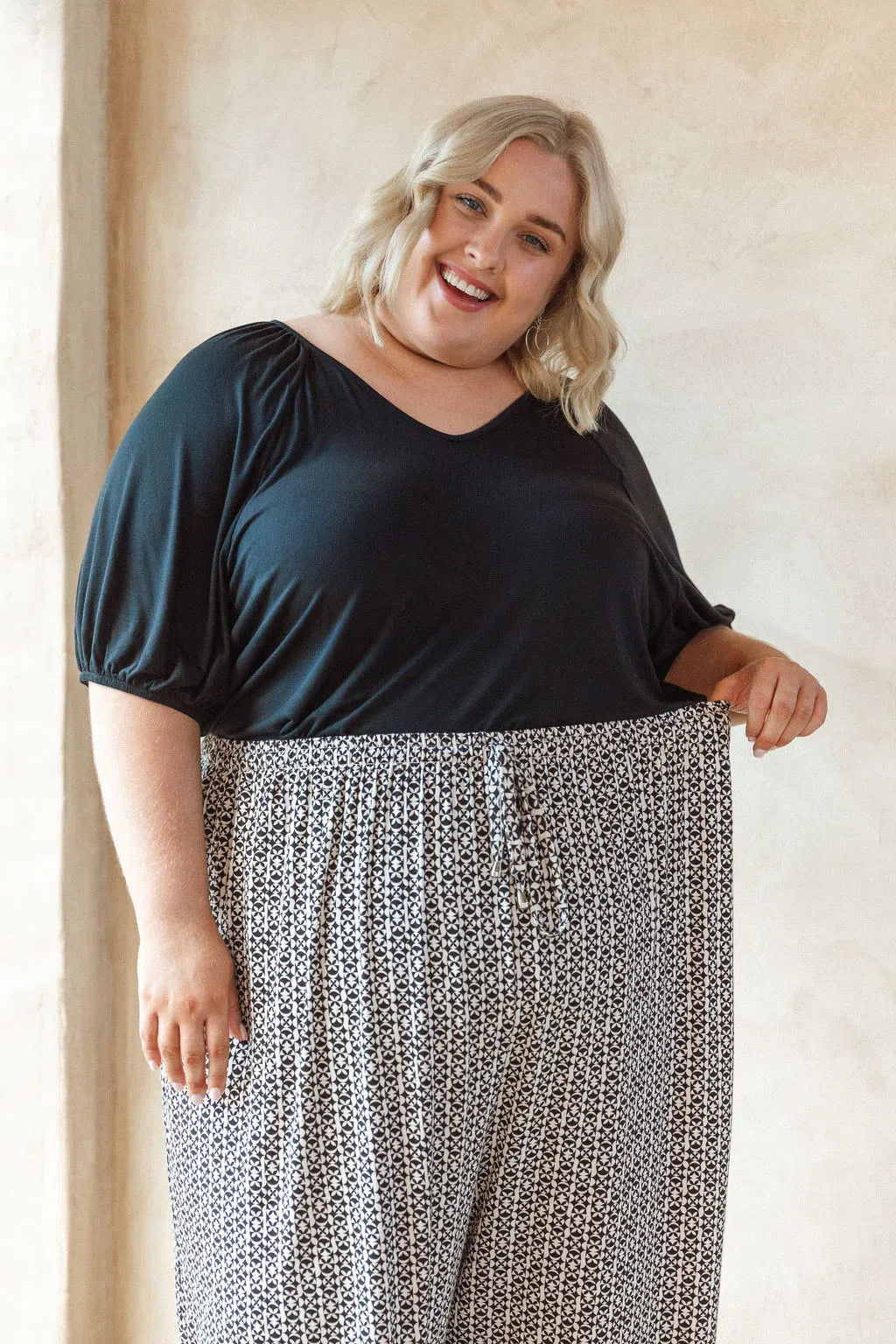 Sarah wears a size 22/24 in the Darcy Pants.