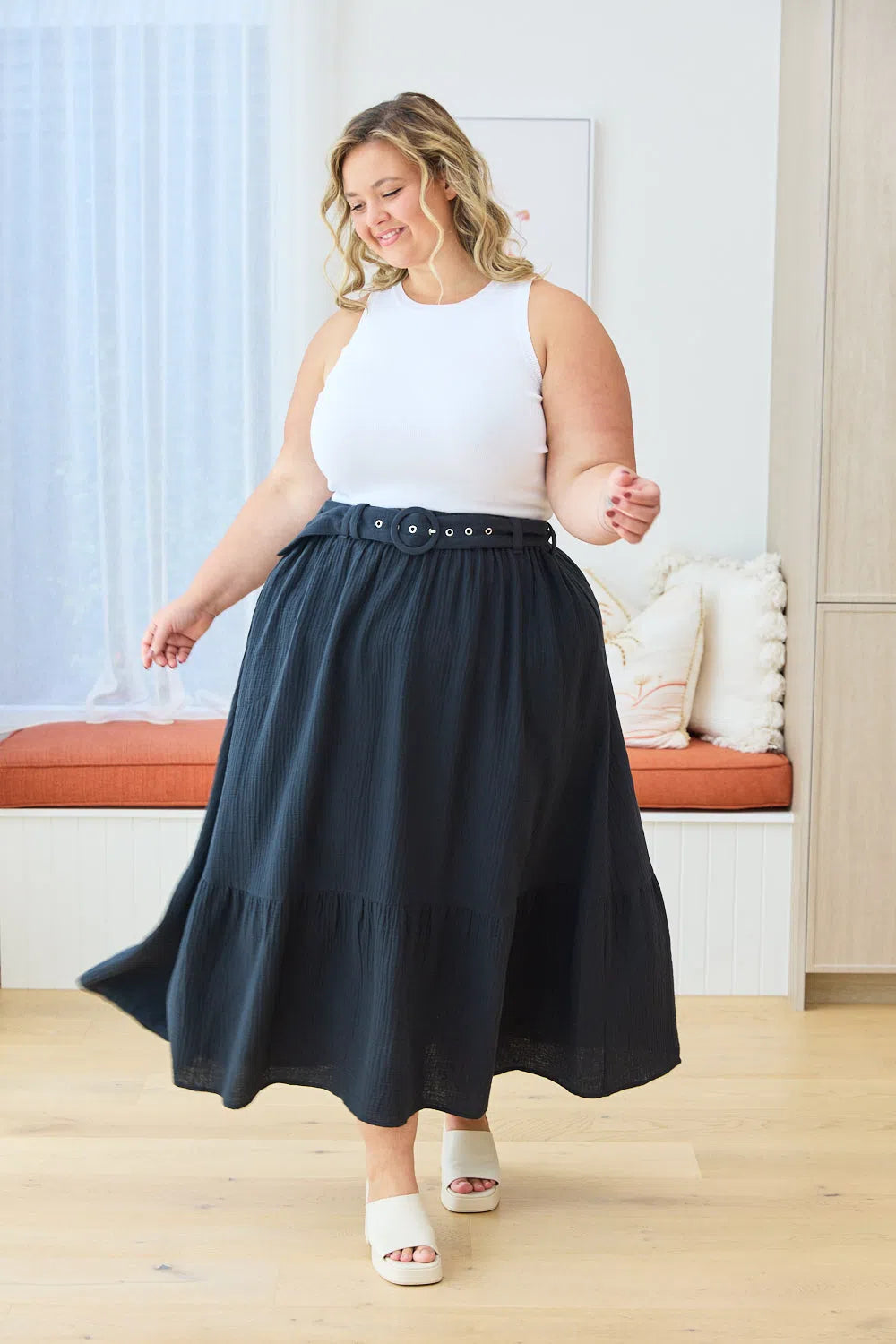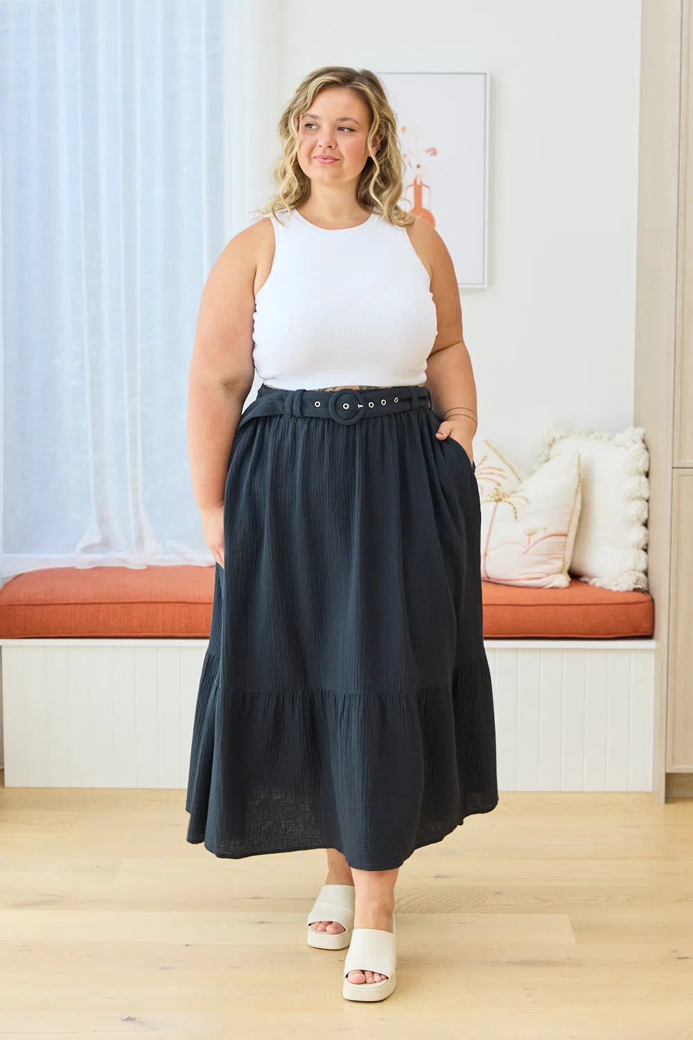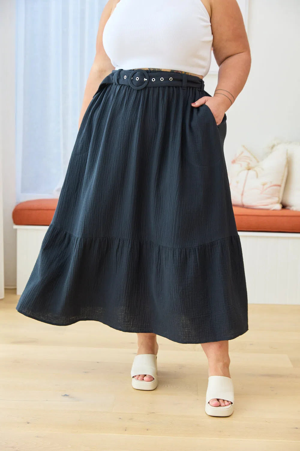 We love a reliable piece you can style year round for a range of occasions! From pairing this piece with slides and a tee for casual vibes, to a mule and an elevated top for an event, the Indiana Skirt has you covered. One of our favourite parts of the design is how floaty and breathable the skirt is, keeping you comfortable to move around even on warmer days.You can even swap out the belt for other belts you already have to totally change up the look (or wear without the belt!)