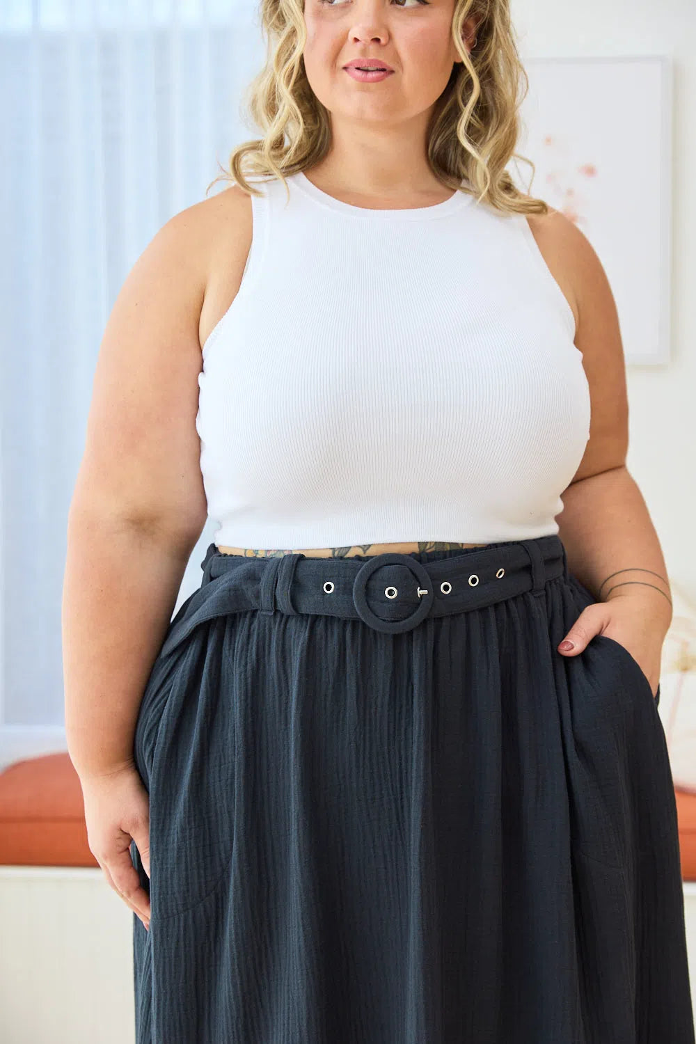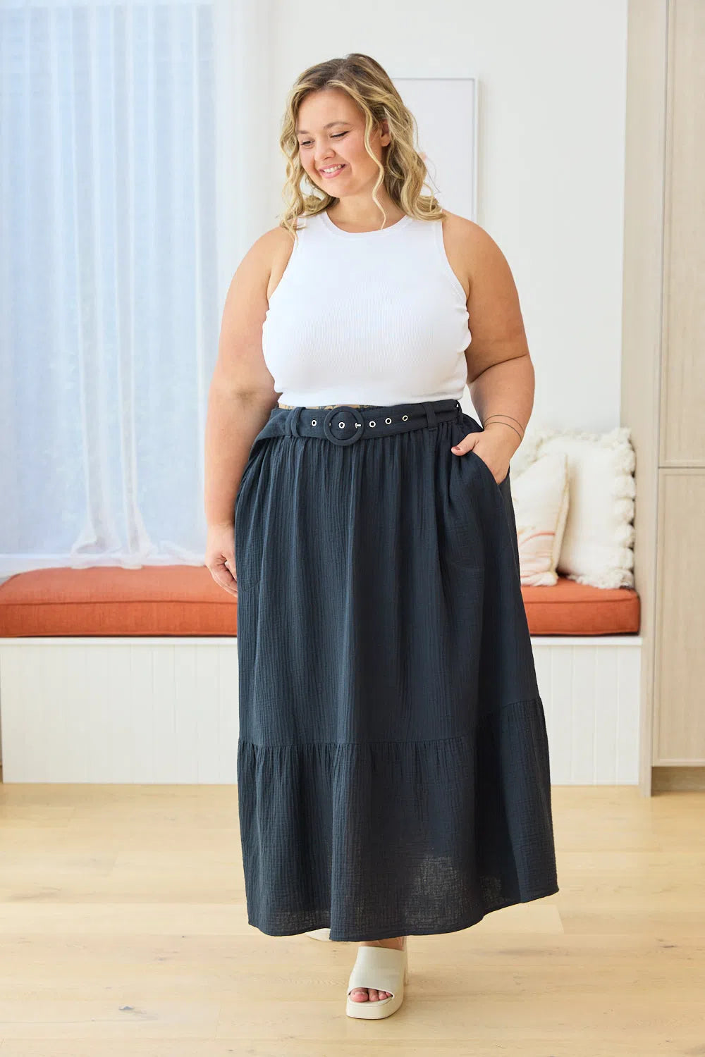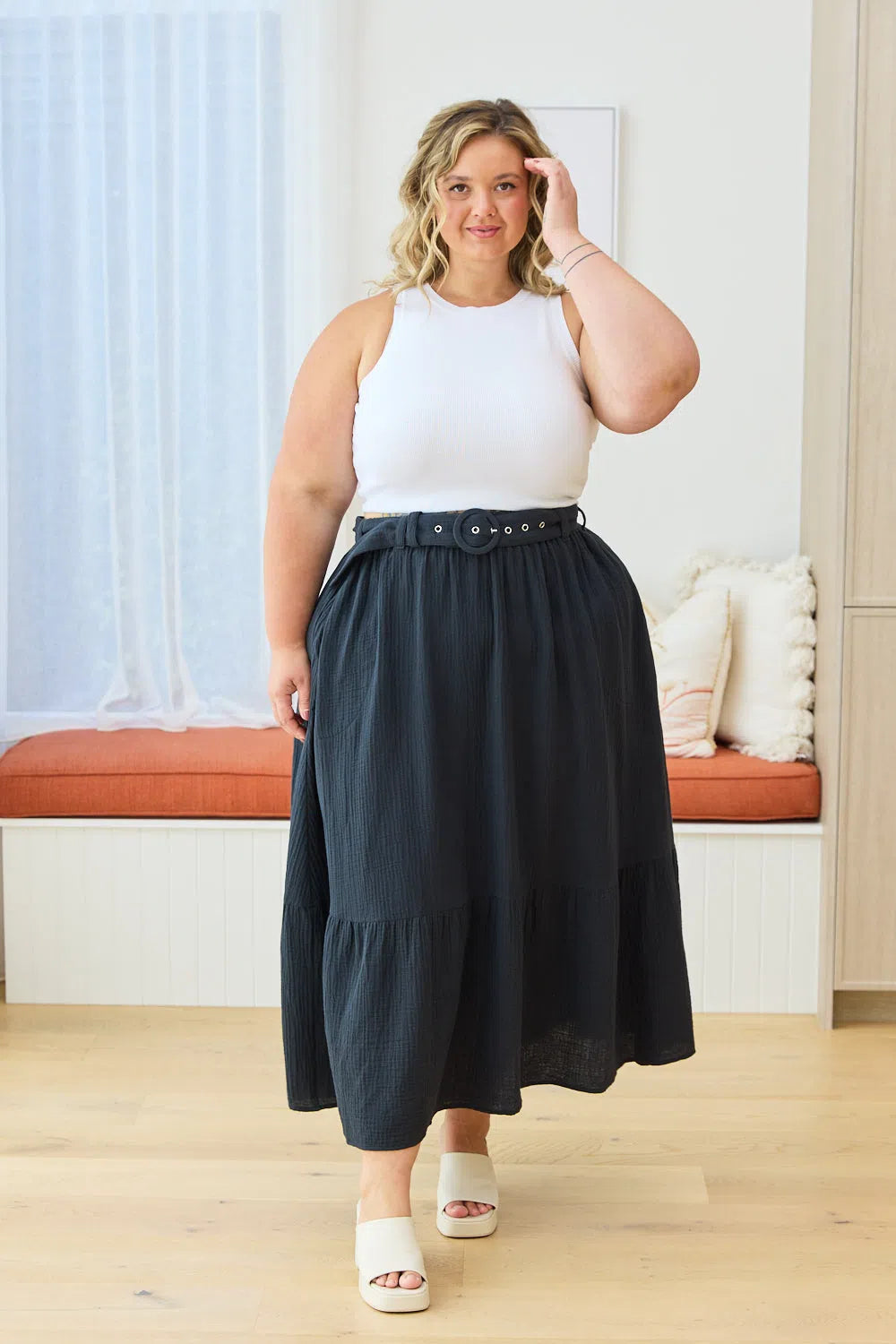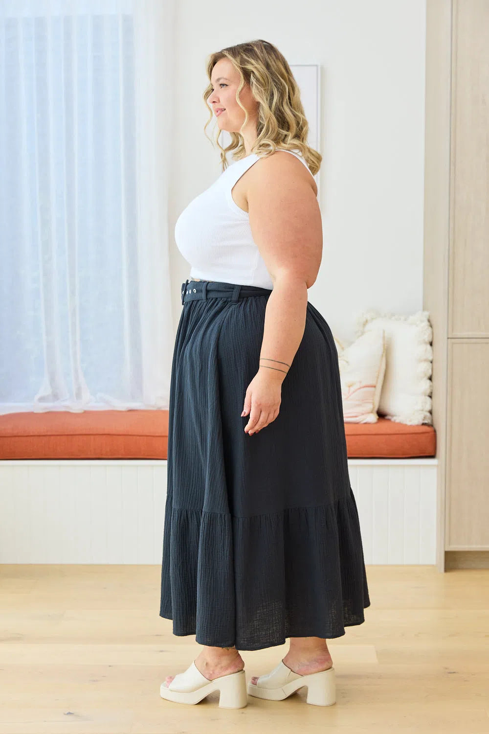 We love a reliable piece you can style year round for a range of occasions! From pairing this piece with slides and a tee for casual vibes, to a mule and an elevated top for an event, the Indiana Skirt has you covered. One of our favourite parts of the design is how floaty and breathable the skirt is, keeping you comfortable to move around even on warmer days.You can even swap out the belt for other belts you already have to totally change up the look (or wear without the belt!)