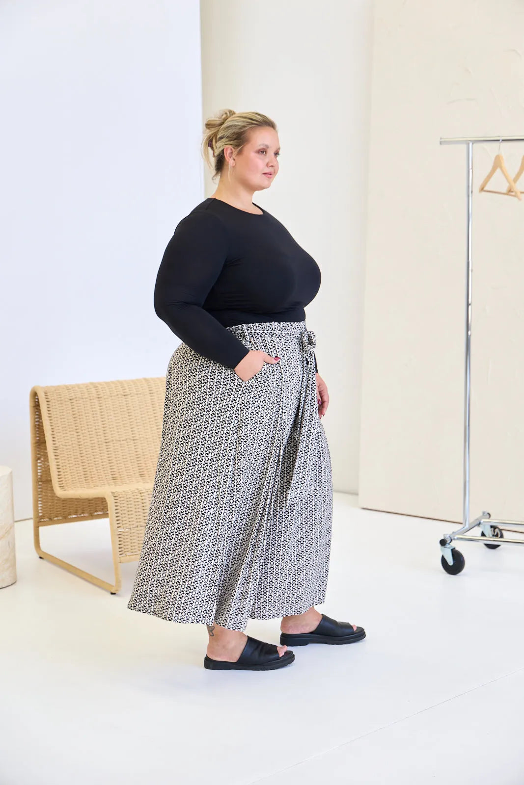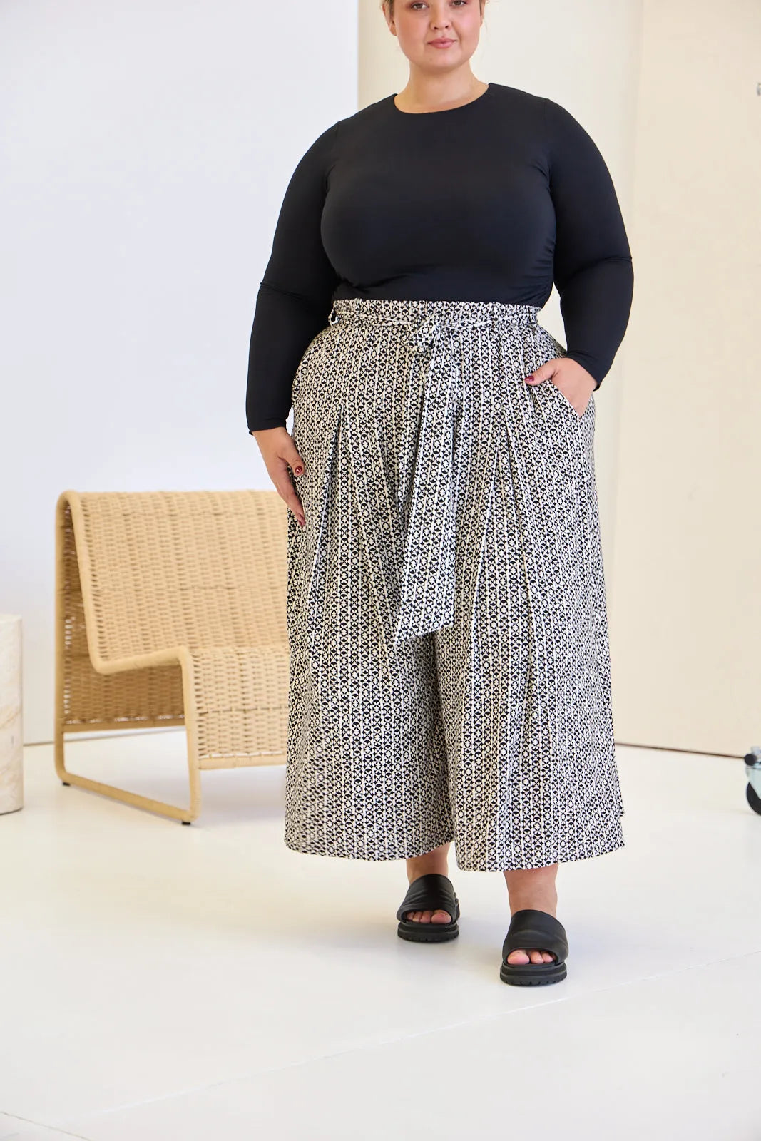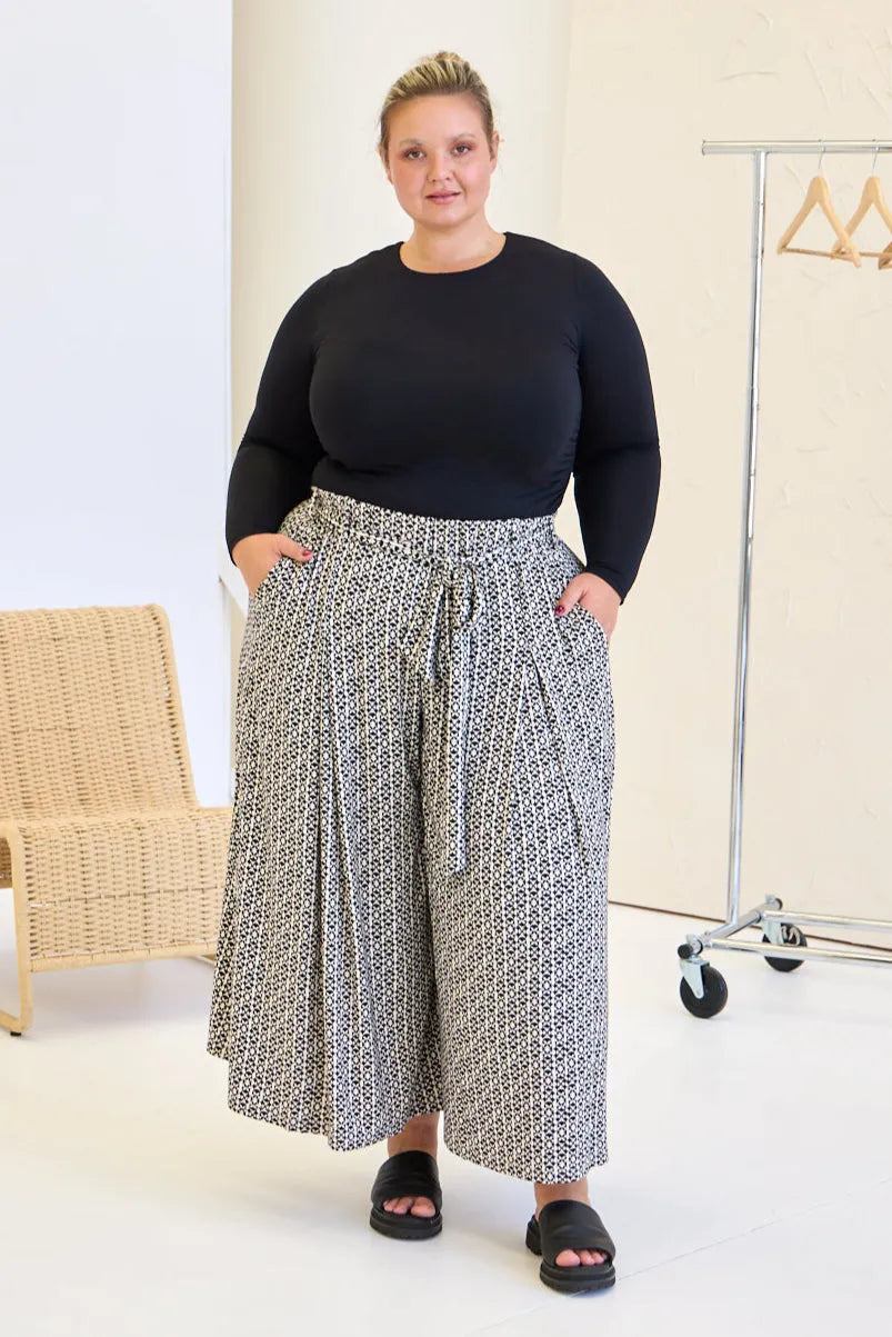 We are honestly obsessed with these pants! Mainly because you feel like you're wearing something super relaxed, but they still look really polished. They are just something you can throw on easily to feel instantly put together without sacrificing comfort. They've got a nice wide leg and gorgeous drape which gives them a bit of drama (in the best way), and the thick, stretchy waistband feels really supportive. The pleats give a beautiful shape and flow, and really add to that polished look. The pockets are hidden really well so they just look sleek and don't add any bulk or volume to the hip - you wouldn't even know they are there! What we also love is how versatile they are—you can wear them with the matching tie for a pulled-together look, swap it out for your own belt, or just leave it off completely. And because they’re generous through the hips and bum, they work especially well if you’ve got curves in your lower body or thick thighs —just pick your size based on your waist and you’re good (they are a generous fit!). They're kind of the go-to for days when you want to look like you tried… without actually trying that hard.