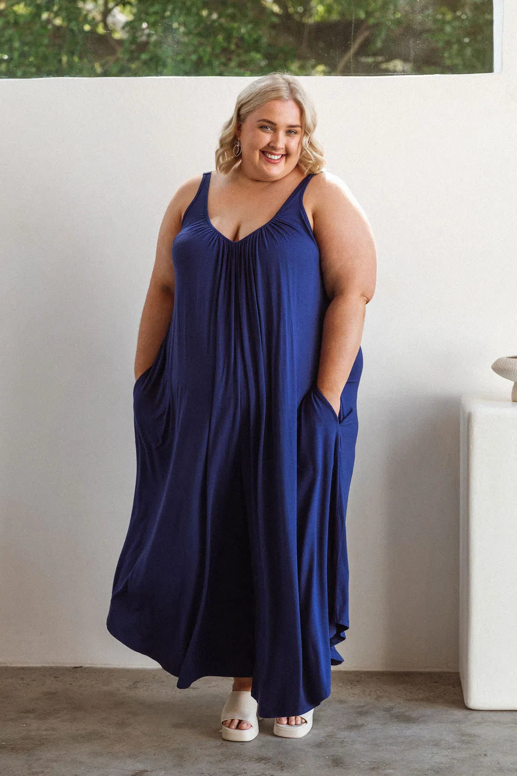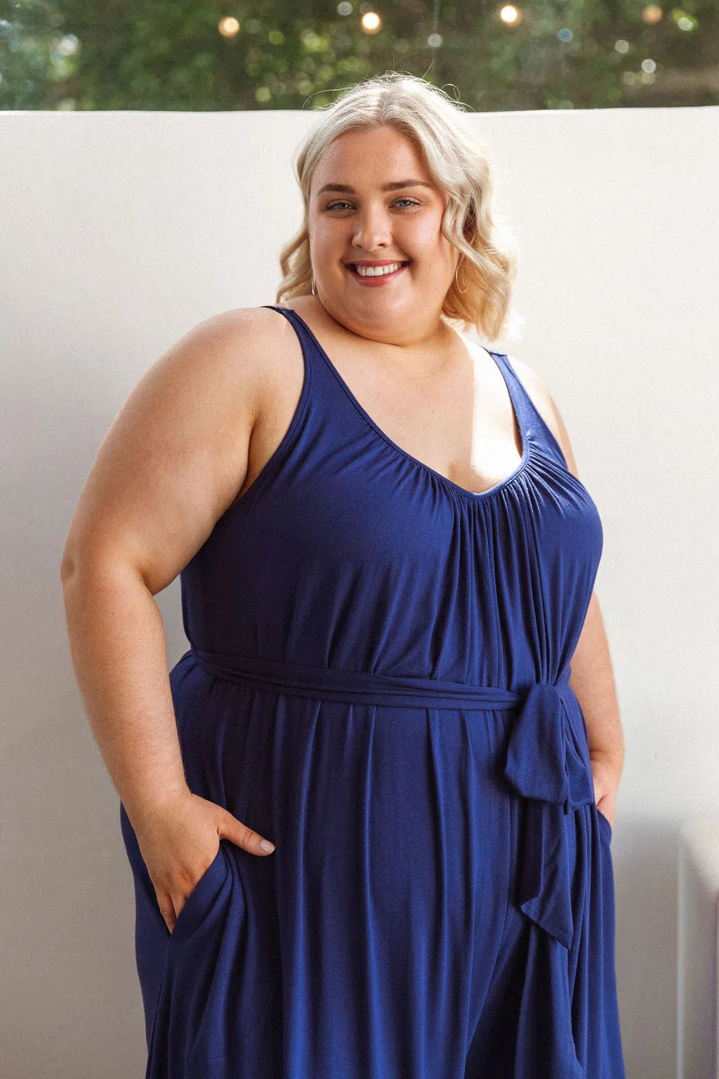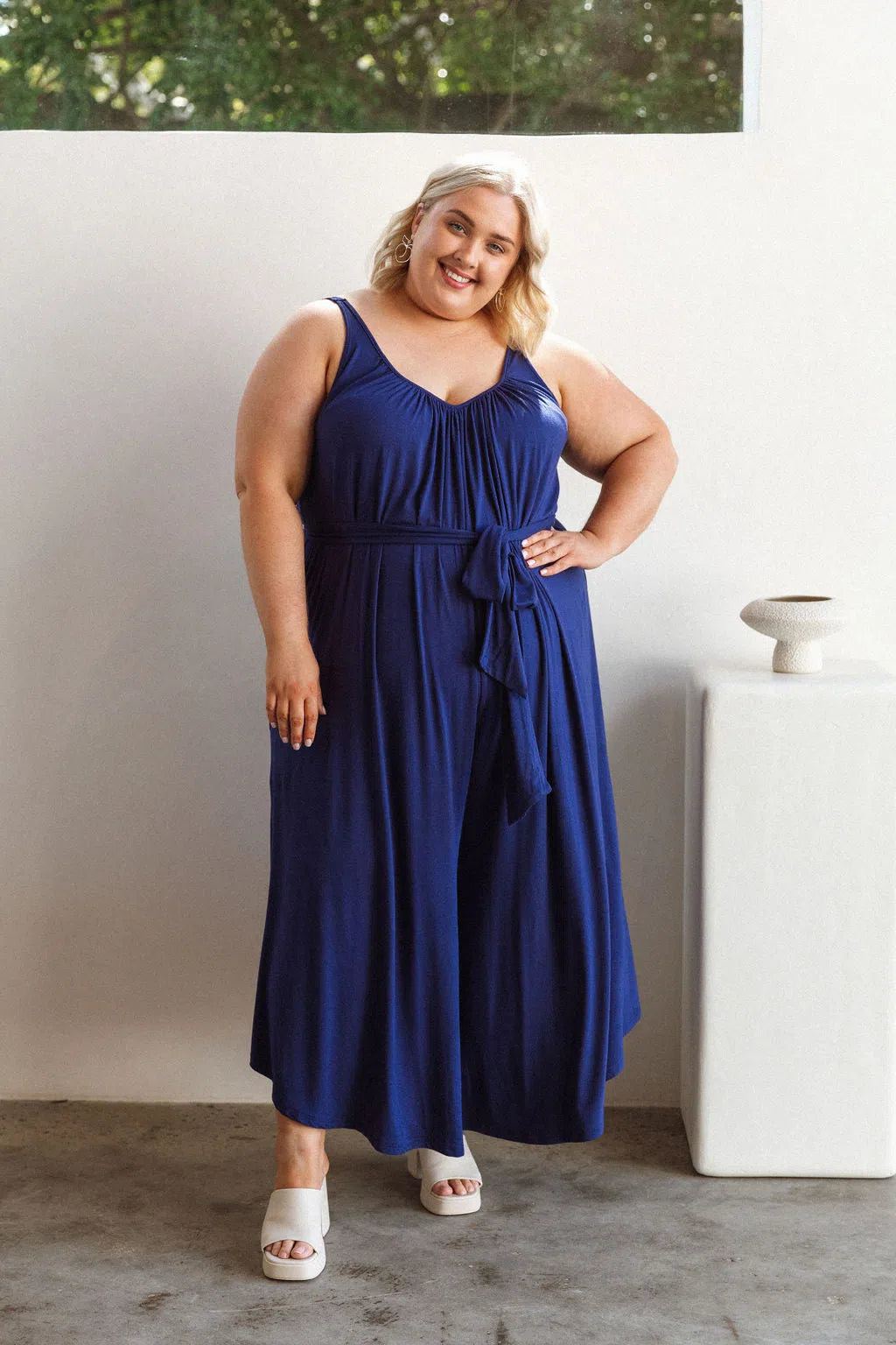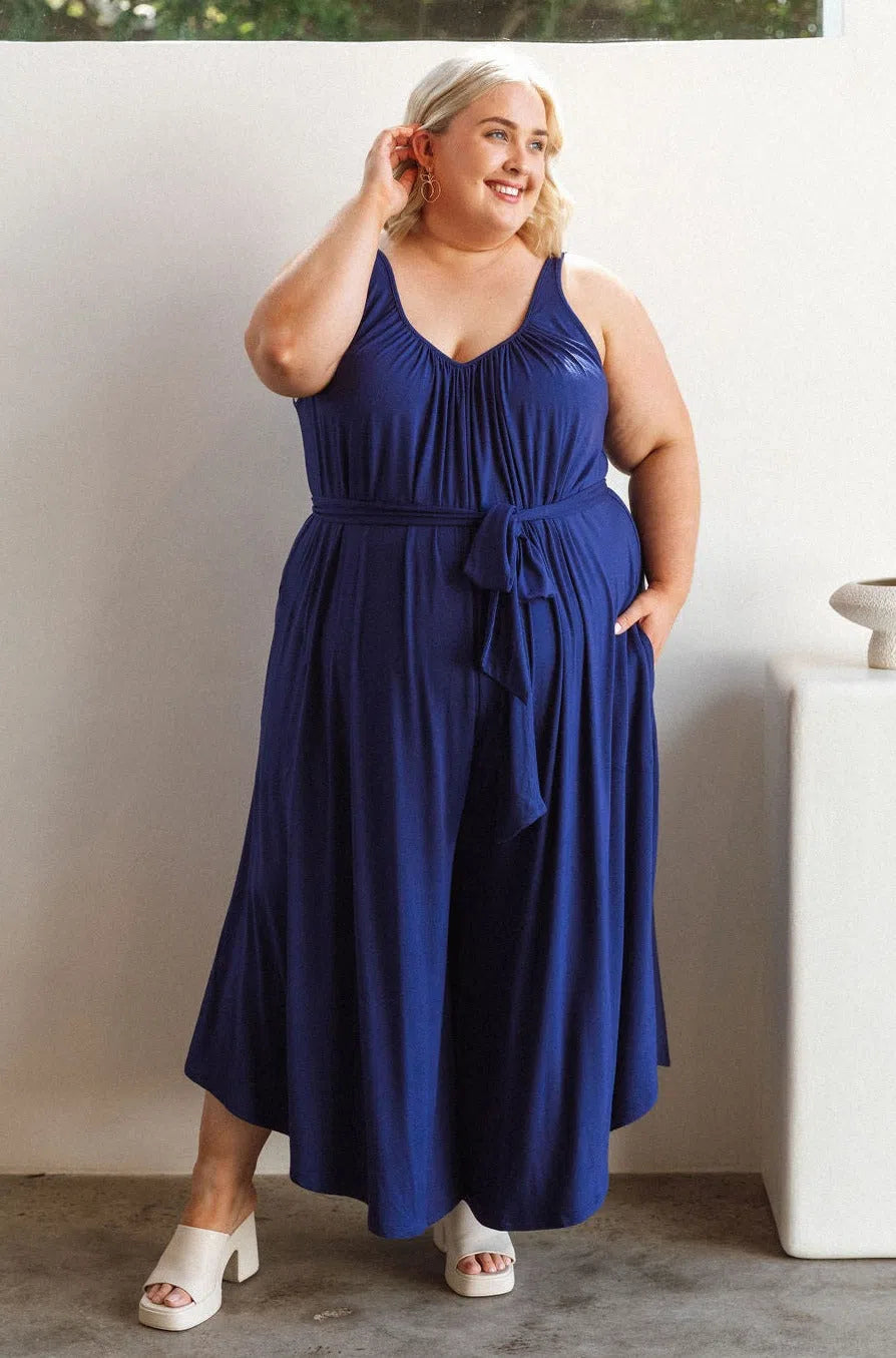 Sarah wears a size 22/24 in the Frankie Jumpsuit.