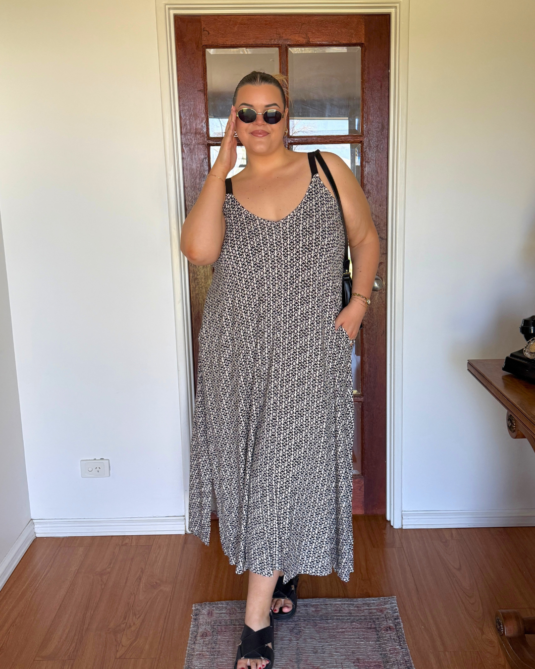 The Annika Dress is just one of those pieces that makes getting dressed feel so easy. We love that it's something you could literally throw on and instantly feel good in—no fuss, no clingy bits, just a relaxed, effortless vibe. It's super soft and stretchy, and combined with the relaxed shape and signature 'peach fit' with extra room in the hip area, the drape is just stunning, so comfy and 'feel good' to wear. A slip dress style can be an intimidating one to reach for with curves, but this one truly does drape on curves like an absolute dream. The flow of it is just divine! We also love how timeless and versatile it is to style. So flowy and cool on its own for warm weather, but also super cute layered with a long sleeve, throw over a button up shirt, or paired with boots and a belt to dress it up. The options are endless!